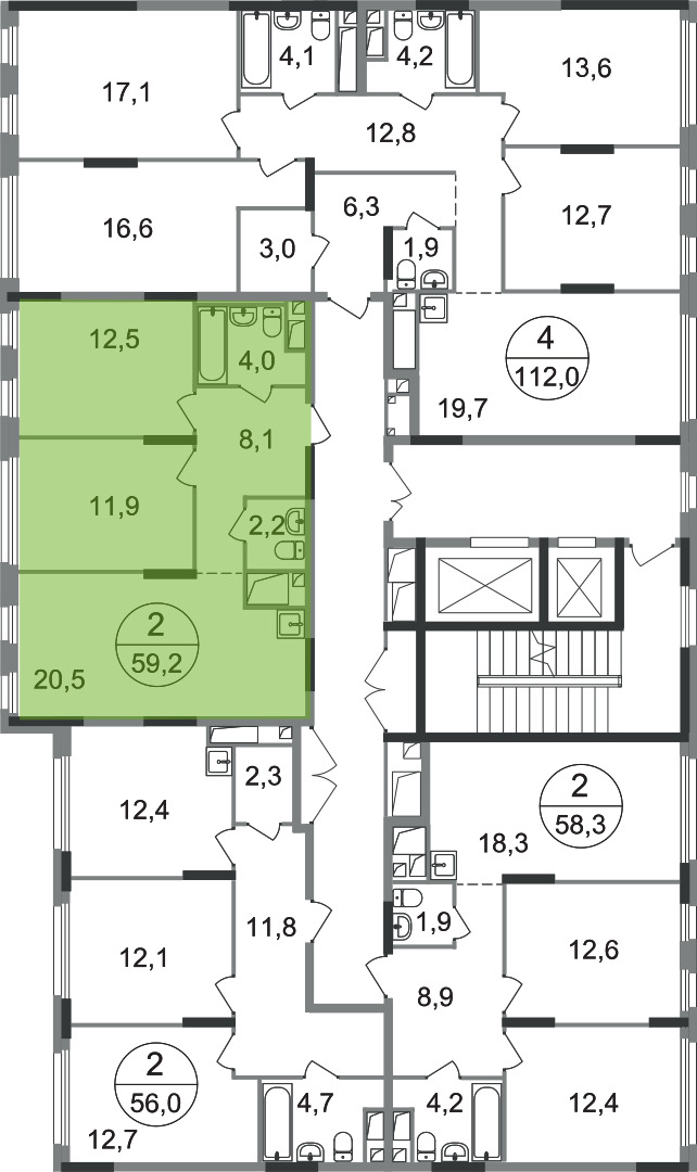 59.2 кв. м