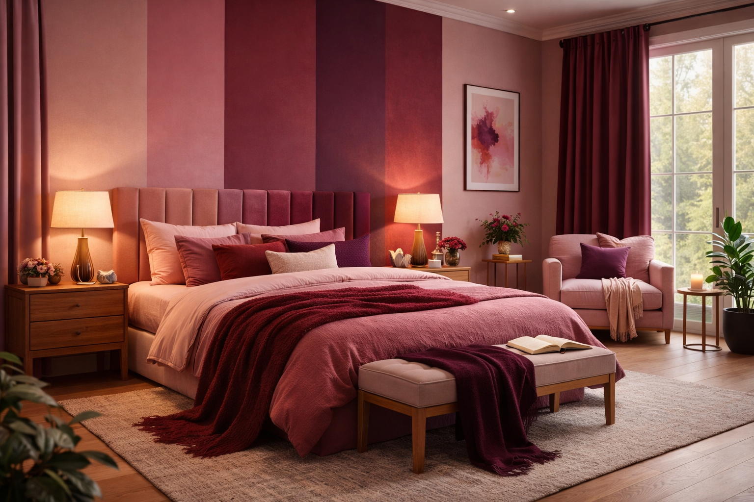 Теплые оттенки розового способствуют расслаблению и формируют комфортную обстановку, что делает их идеальными для спальни.