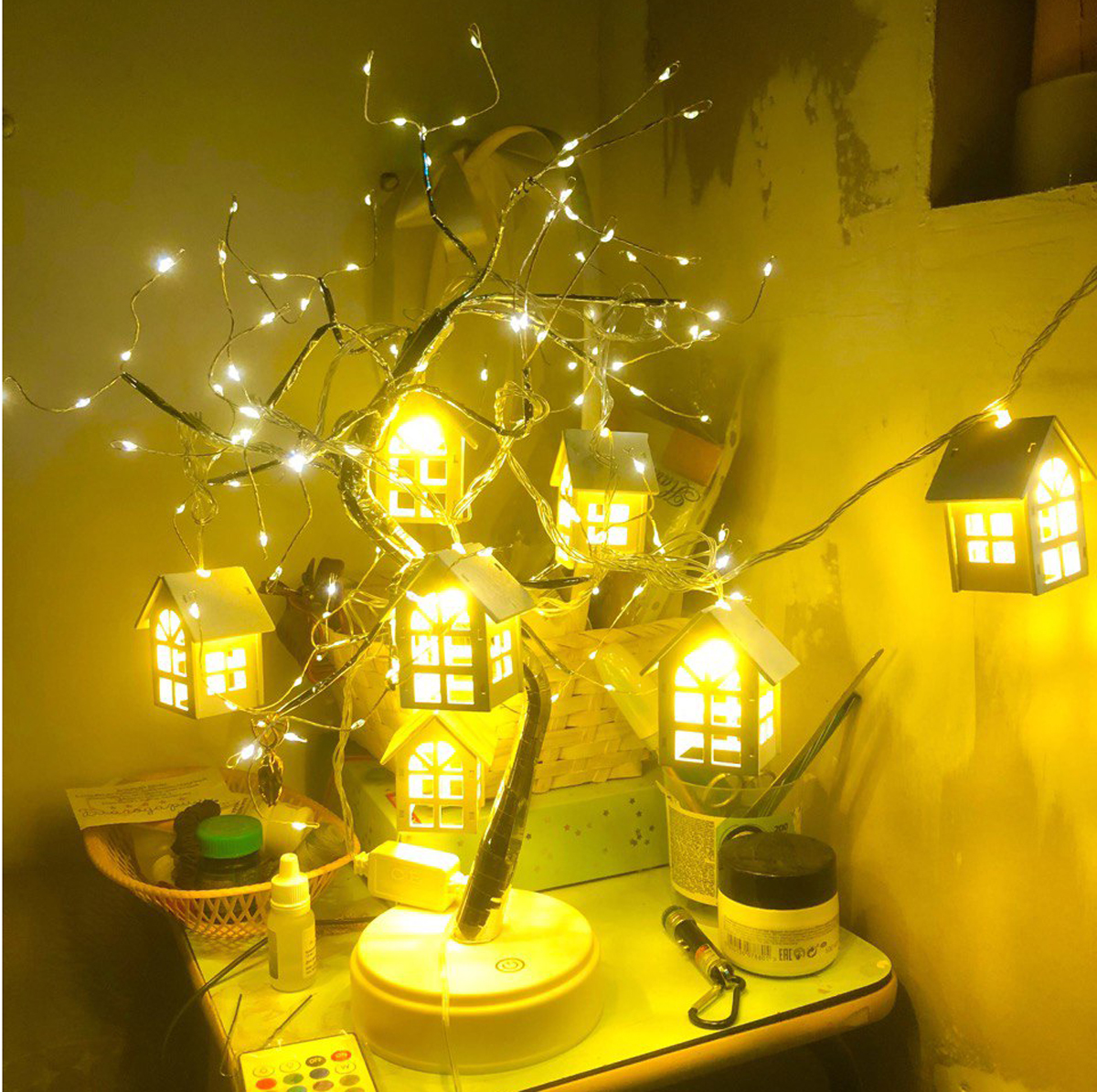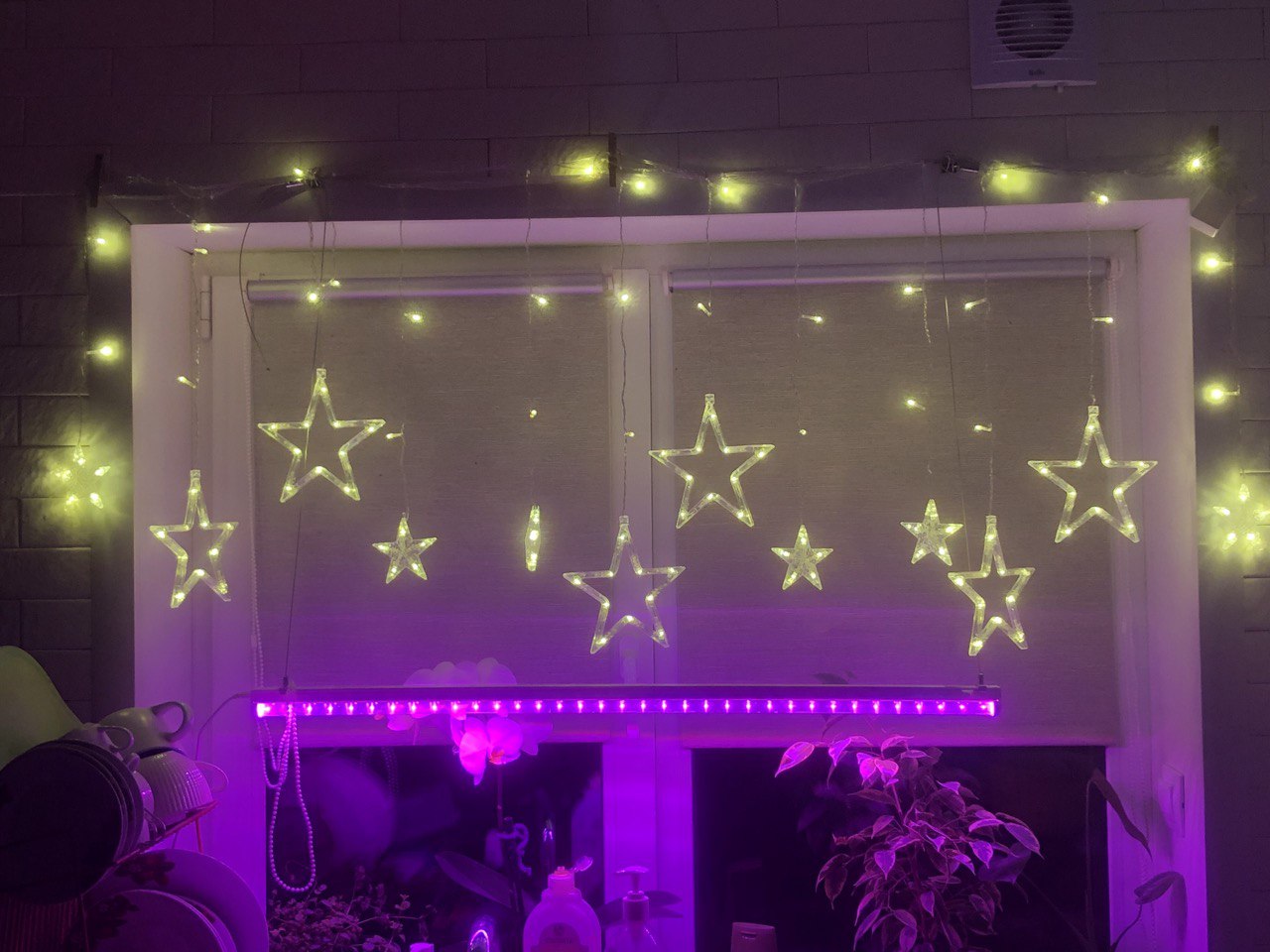 А это мой аналог елки 2 в1. Используется дополнительно как ночник. Выглядит очень волшебно и празднично даже в условиях полной разрухи. Цена вместе с гирляндой в районе 1000 рублей.