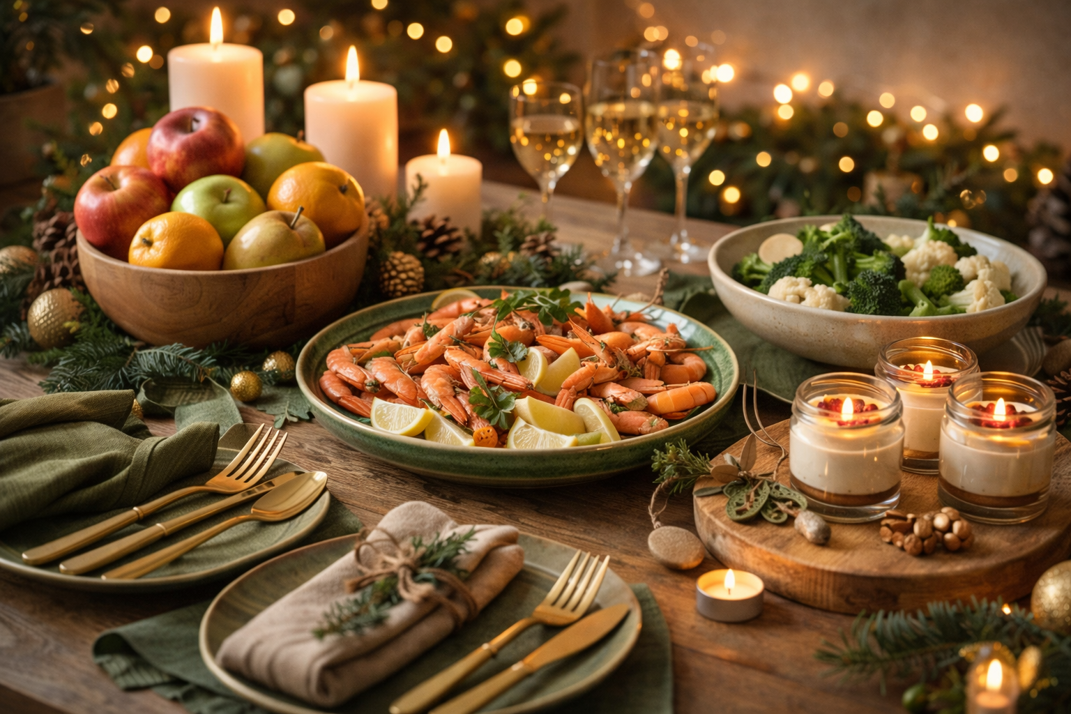 2. Морепродукты: Они символизируют богатство и здоровье. Приготовьте салаты или закуски из креветок, мидий, крабов.