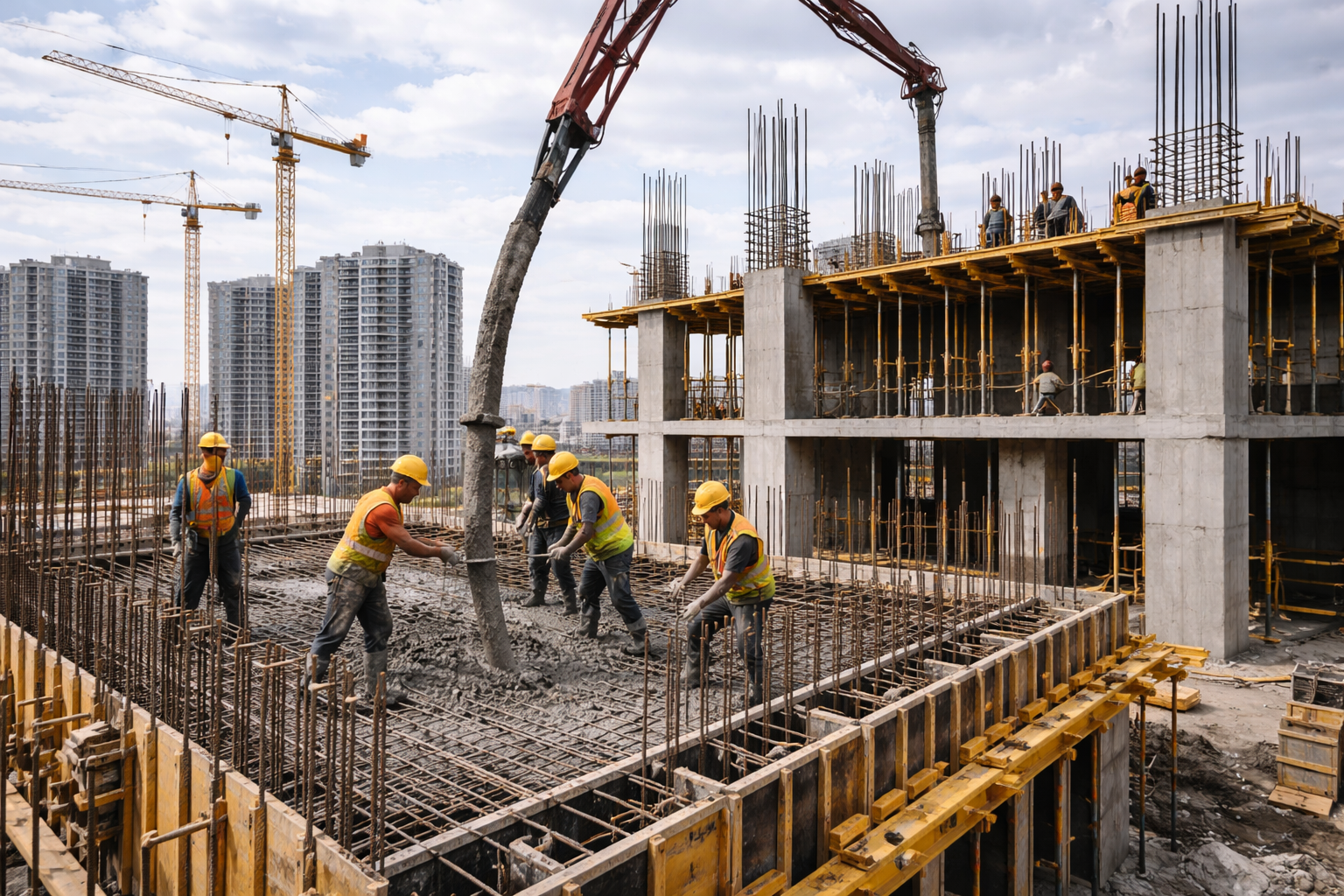 - Высокая прочность и долговечность: Монолитные конструкции обеспечивают отличные показатели прочности, что делает здания более стойкими к различным нагрузкам.