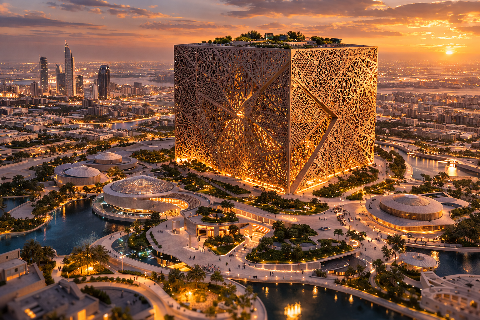 Пока на российском горизонте возникают новые архитектурные образы, в Саудовской Аравии активно продвигается строительство «Мукааб»— самого массивного здания в мире, высота которого составит 400 метров, а площадь будет превышать 19 миллионов квадратных метров. Этот проект уже сейчас вызывает закономерные параллели с первым этапом строительства Великой пирамиды в Гизе.