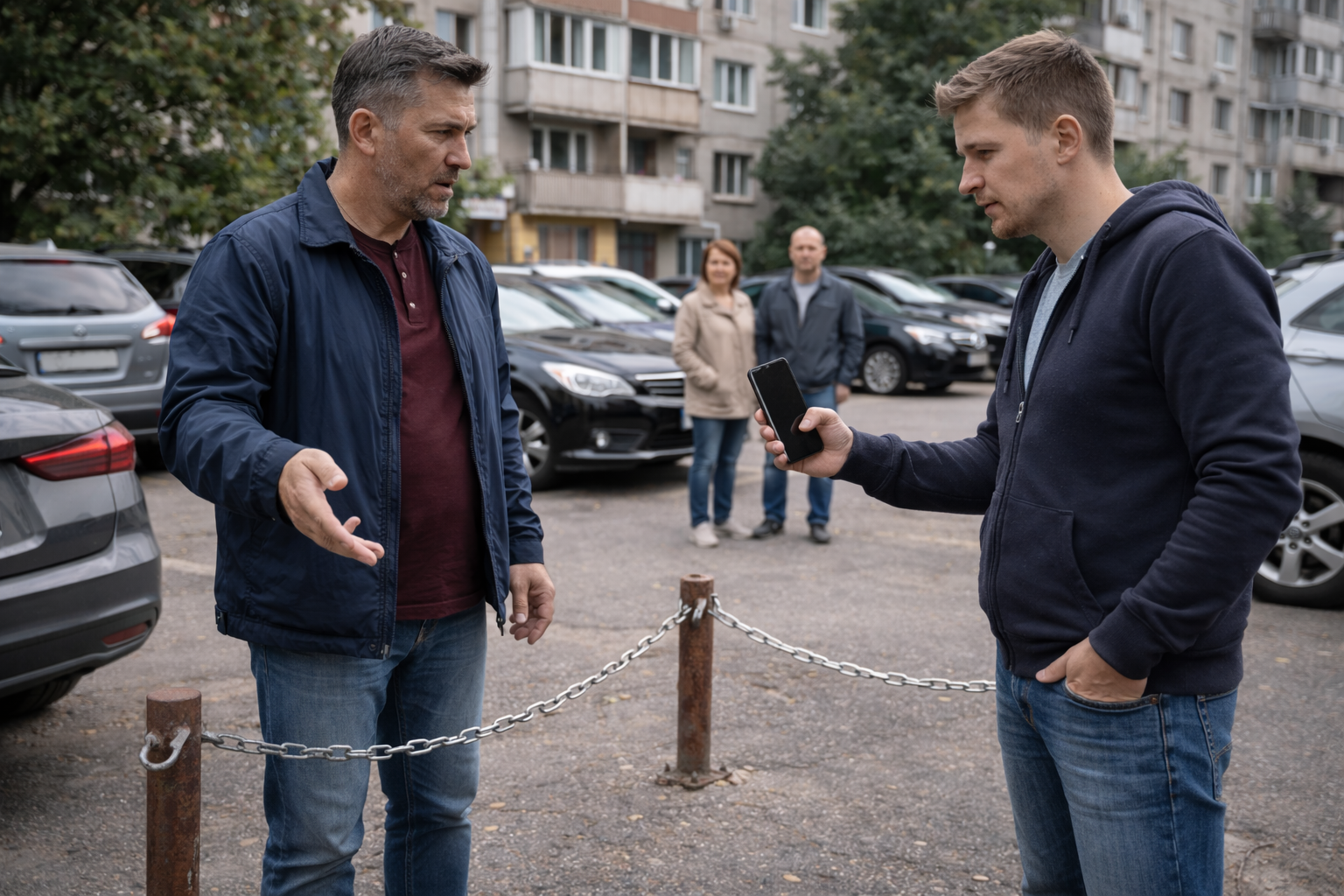 На практике конфликт возникает там, где парковок в округе физически не хватает. Жители соседних домов паркуются «по умолчанию», а жильцы вашего дома не могут найти место. Решение — установка шлагбаума или системы видеофиксации с последующим выставлением чужих автомобилей на эвакуацию или принятие правил пользования парковкой на общем собрании с уведомлением через таблички.