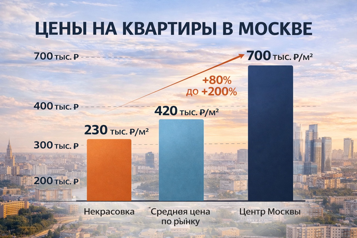 Некрасовка в 2026 году остаётся одним из самых доступных районов Москвы для покупки квартиры. Стоимость квадратного метра здесь значительно ниже среднего уровня по городу, что делает район привлекательным для покупателей с ограниченным бюджетом.