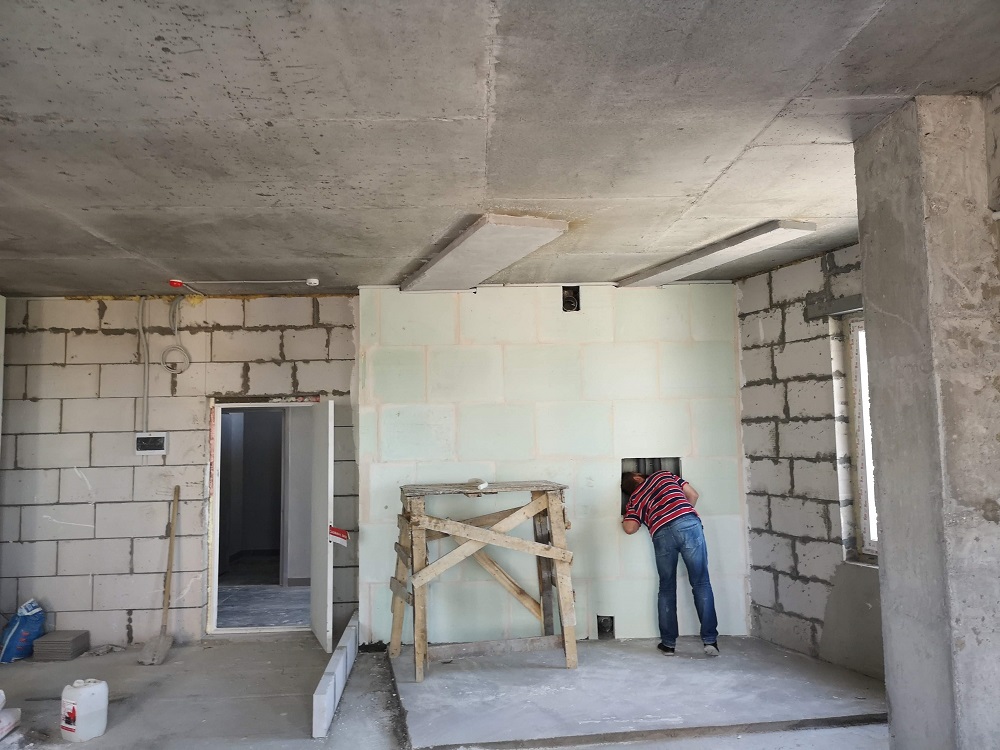 Далее традиционно осматривают стены и перекрытия. На поверхностях не должно быть ничего, кроме бетона и отделочных материалов. Влажные пятна на стенах свидетельствуют о некачественной облицовке фасада в здании. На стыках между блоками и панелями не должно быть щелей, приводящих к сквознякам и образованию наледи. Швы на потолке и бетонной стяжке пола должны быть полностью оштукатурены.