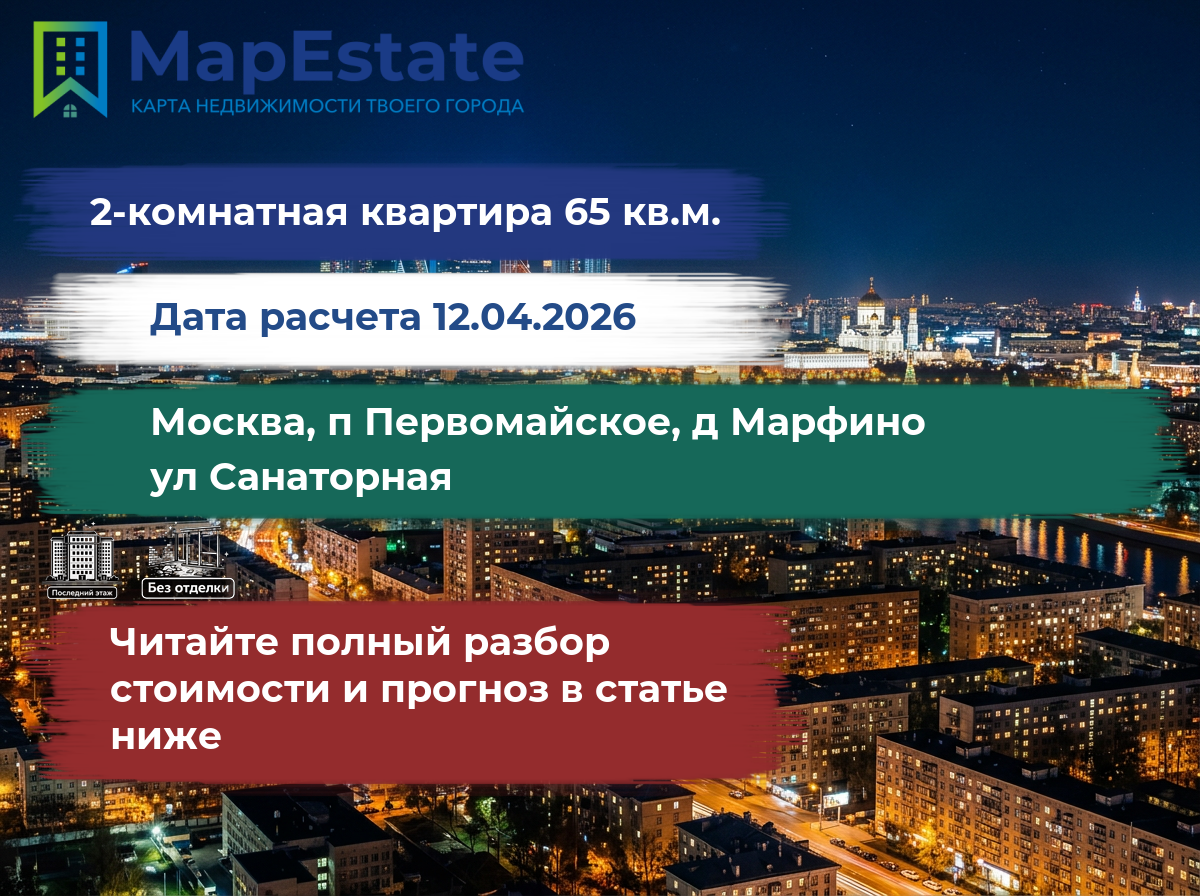 Сколько стоит квартира 65 м² в москва, п первомайское, д марфино, ул санаторная?