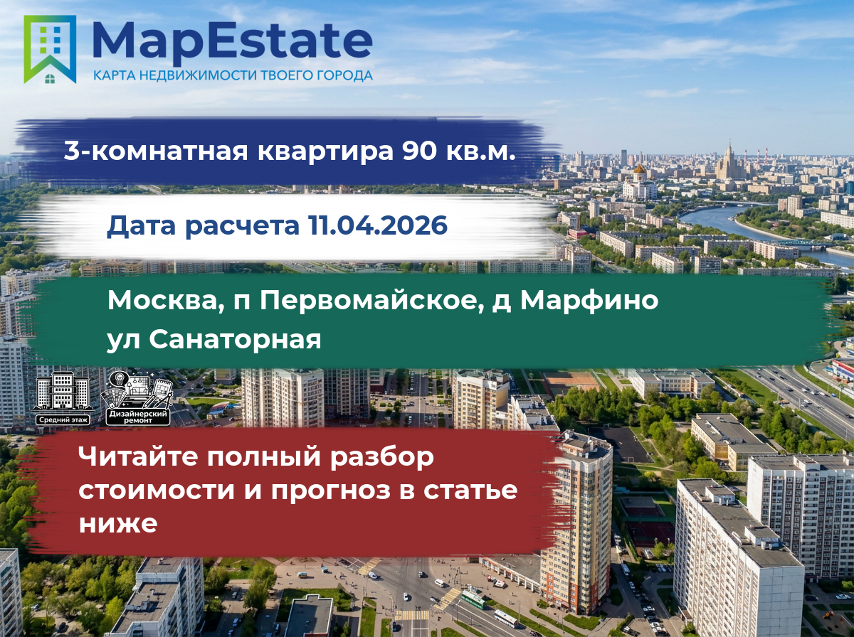 Сколько стоит квартира 90 м² в москва, п первомайское, д марфино, ул санаторная?
