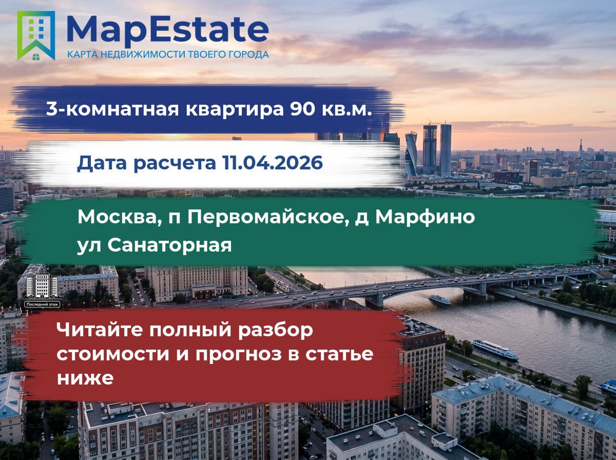 Сколько стоит квартира 90 м² в москва, п первомайское, д марфино, ул санаторная?