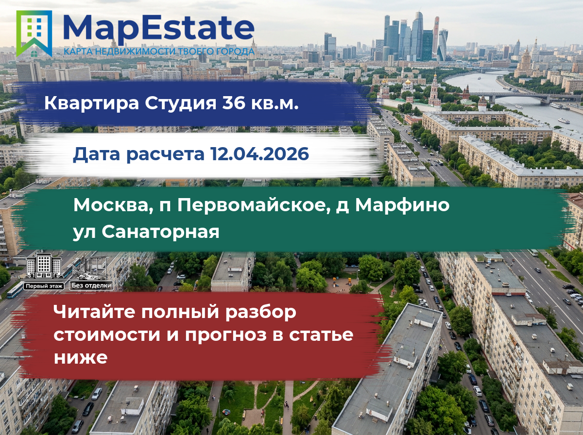 Средняя стоимость квартир по адресу москва, п первомайское, д марфино, ул санаторная