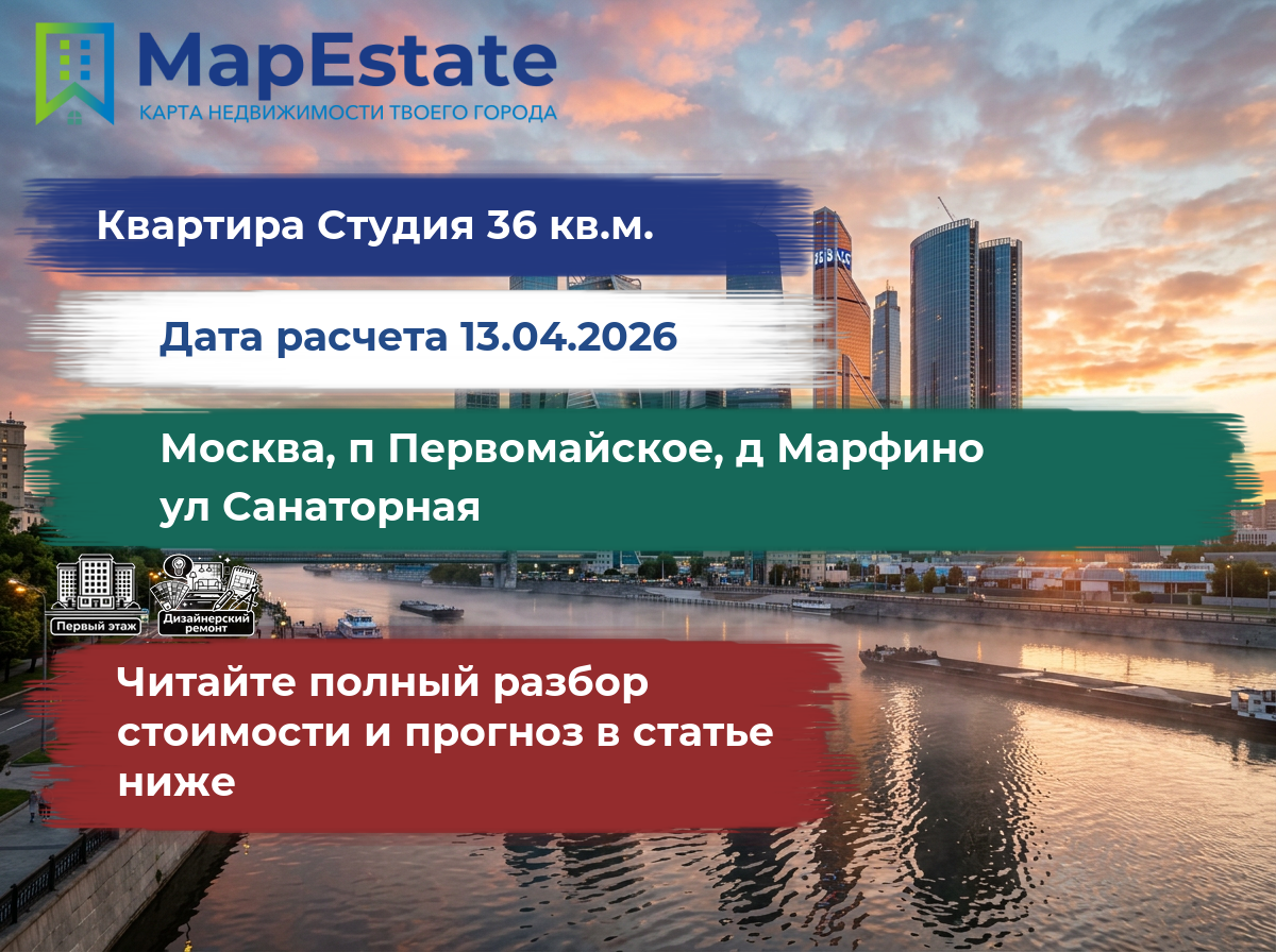 Сколько стоит квартира 36 м² в москва, п первомайское, д марфино, ул санаторная?