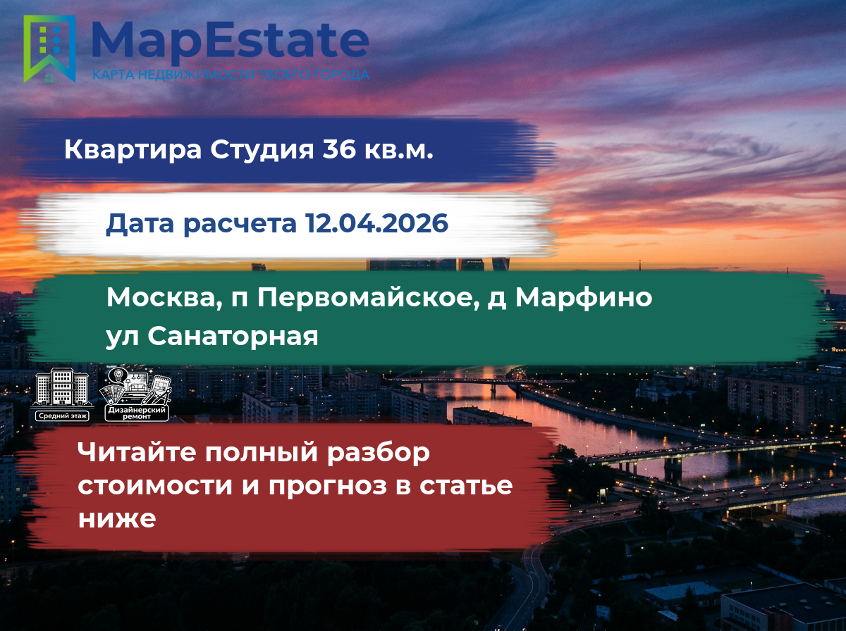 Сколько стоит квартира 36 м² в москва, п первомайское, д марфино, ул санаторная?