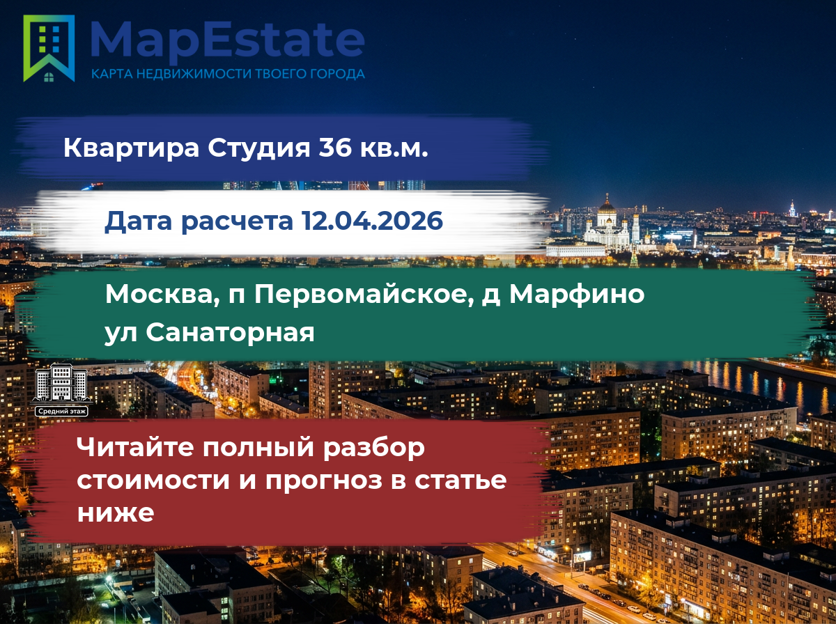 Сколько стоит квартира 36 м² в москва, п первомайское, д марфино, ул санаторная?