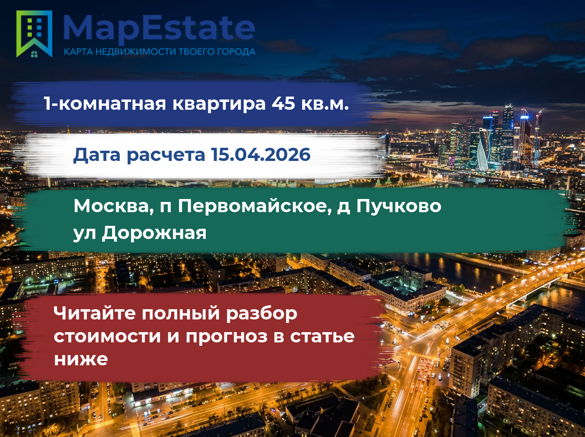 Сколько стоит квартира 45 м² в москва, п первомайское, д пучково, ул дорожная?