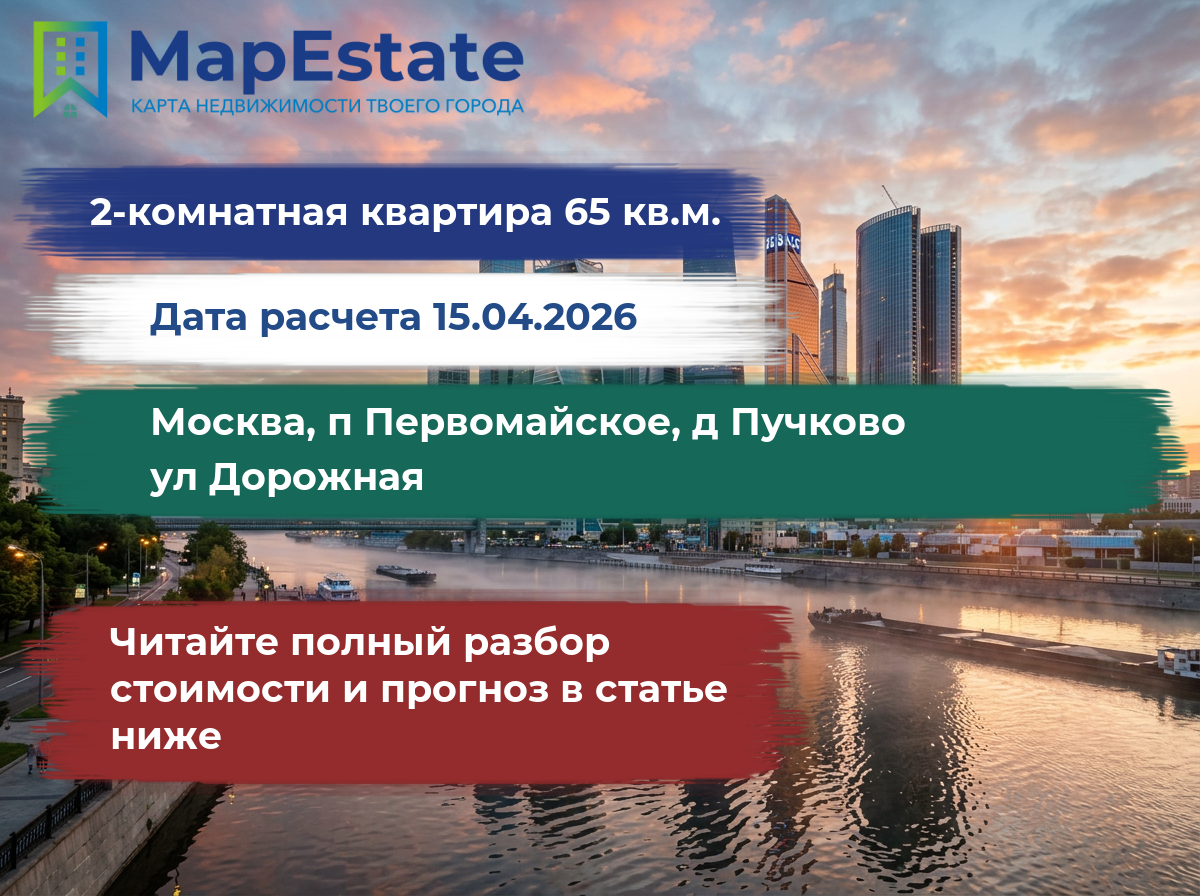 Сколько стоит квартира 65 м² в москва, п первомайское, д пучково, ул дорожная?