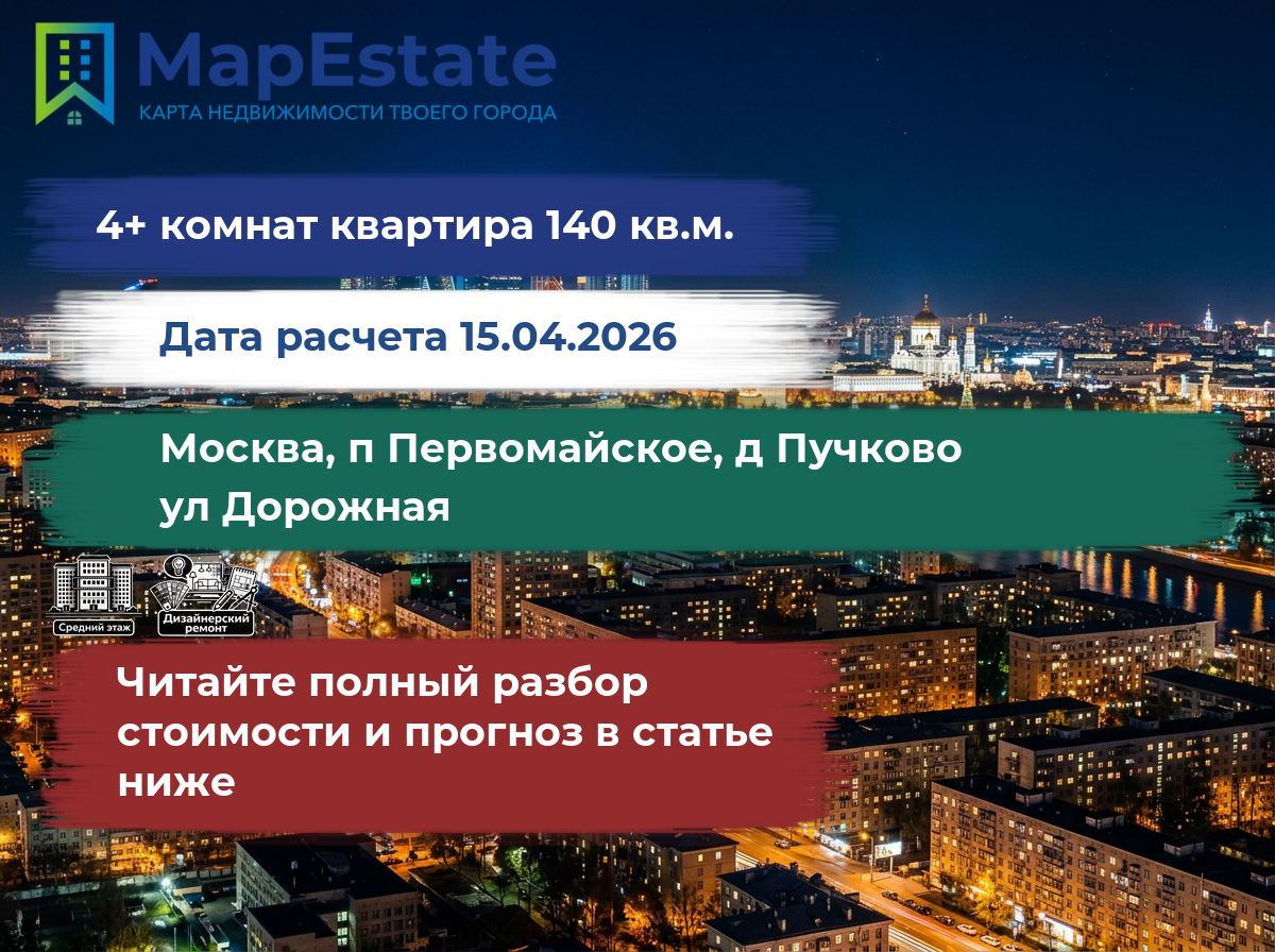Сколько стоит квартира 140 м² в москва, п первомайское, д пучково, ул дорожная?