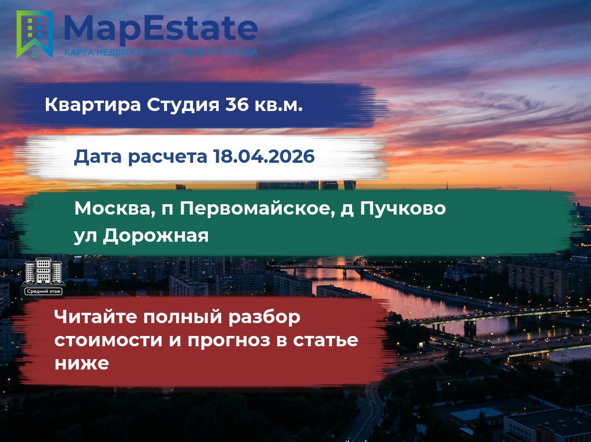Сколько стоит квартира 36 м² в москва, п первомайское, д пучково, ул дорожная?