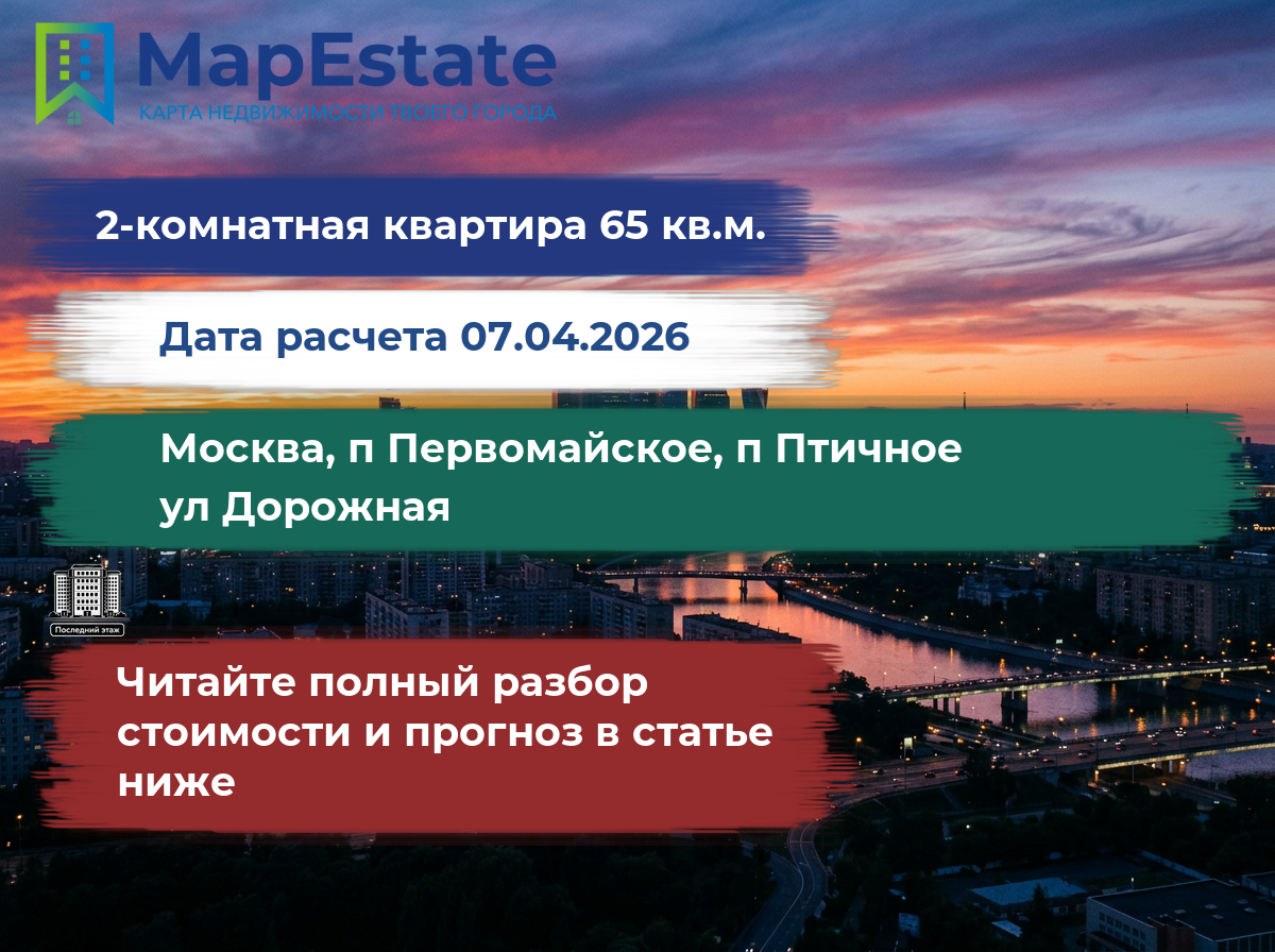 Сколько стоит квартира 65 м² в москва, п первомайское, п птичное, ул дорожная?