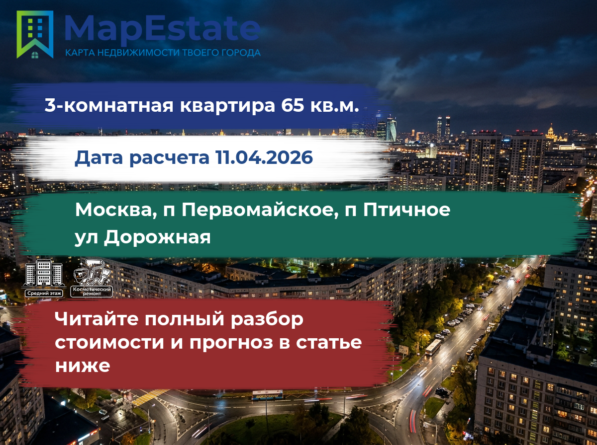 Сколько стоит квартира 65 м² в москва, п первомайское, п птичное, ул дорожная?
