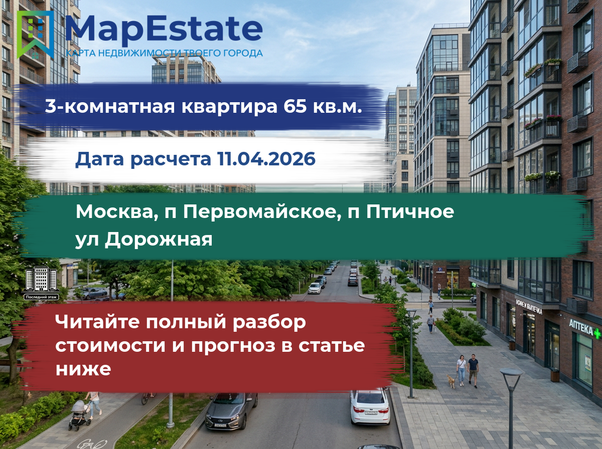 Сколько стоит квартира 65 м² в москва, п первомайское, п птичное, ул дорожная?