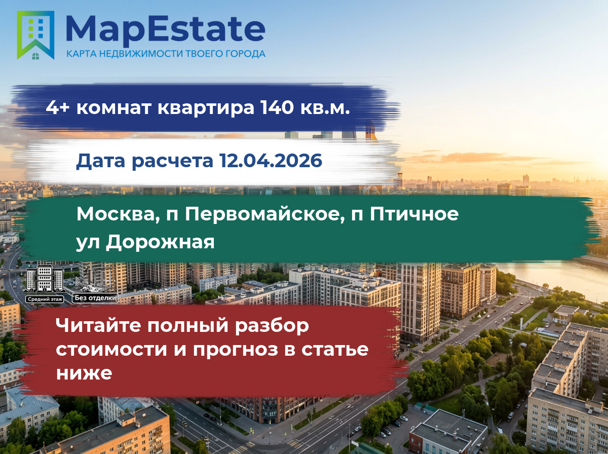 Сколько стоит квартира 140 м² в москва, п первомайское, п птичное, ул дорожная?