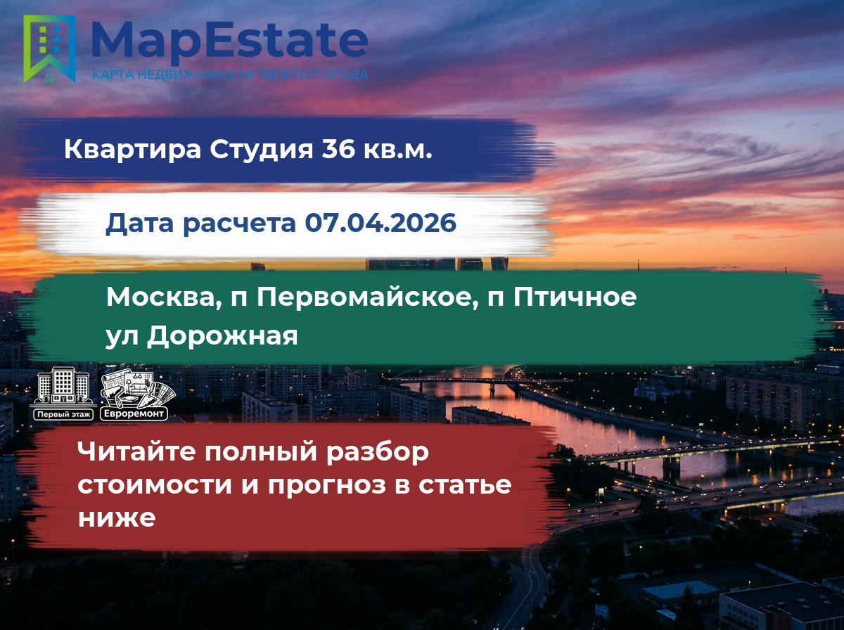 Сколько стоит квартира 36 м² в москва, п первомайское, п птичное, ул дорожная?