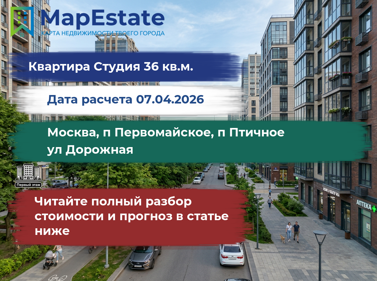 Сколько стоит квартира 36 м² в москва, п первомайское, п птичное, ул дорожная?