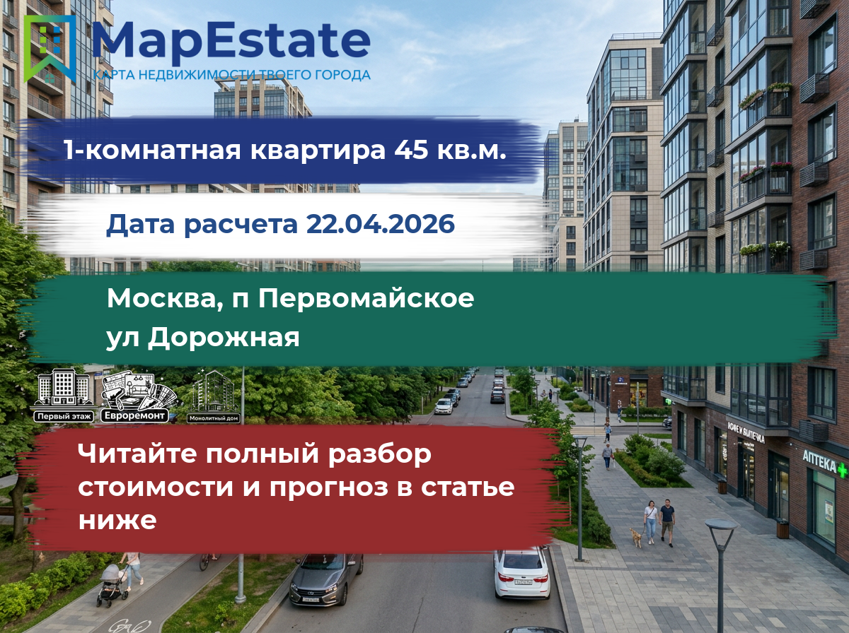 Сколько стоит квартира 45 м² в москва, п первомайское, ул дорожная?