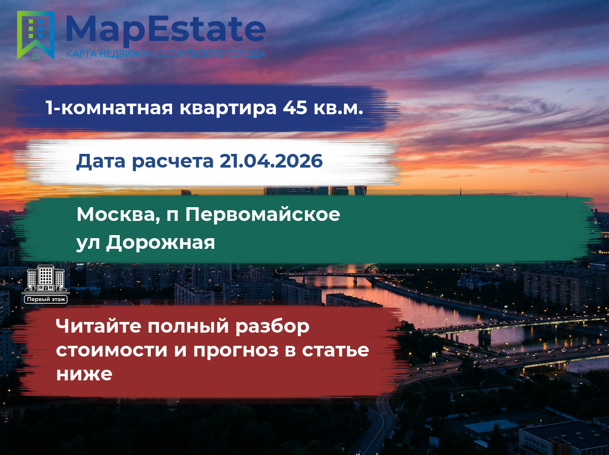 Сколько стоит квартира 45 м² в москва, п первомайское, ул дорожная?