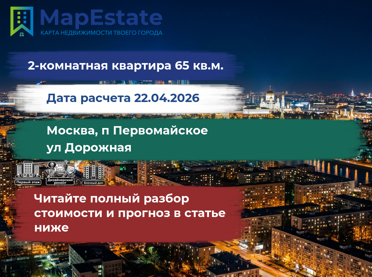 Сколько стоит квартира 65 м² в москва, п первомайское, ул дорожная?