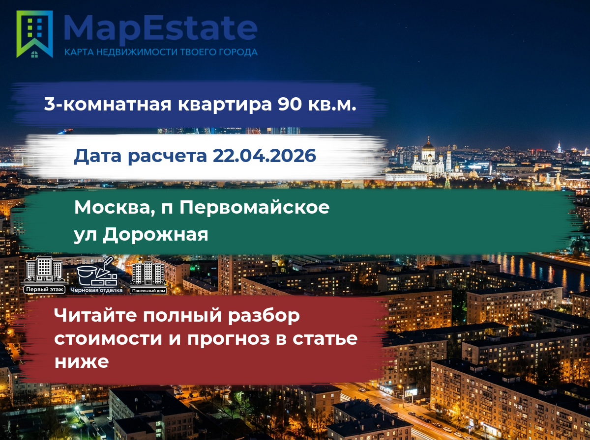 Сколько стоит квартира 90 м² в москва, п первомайское, ул дорожная?