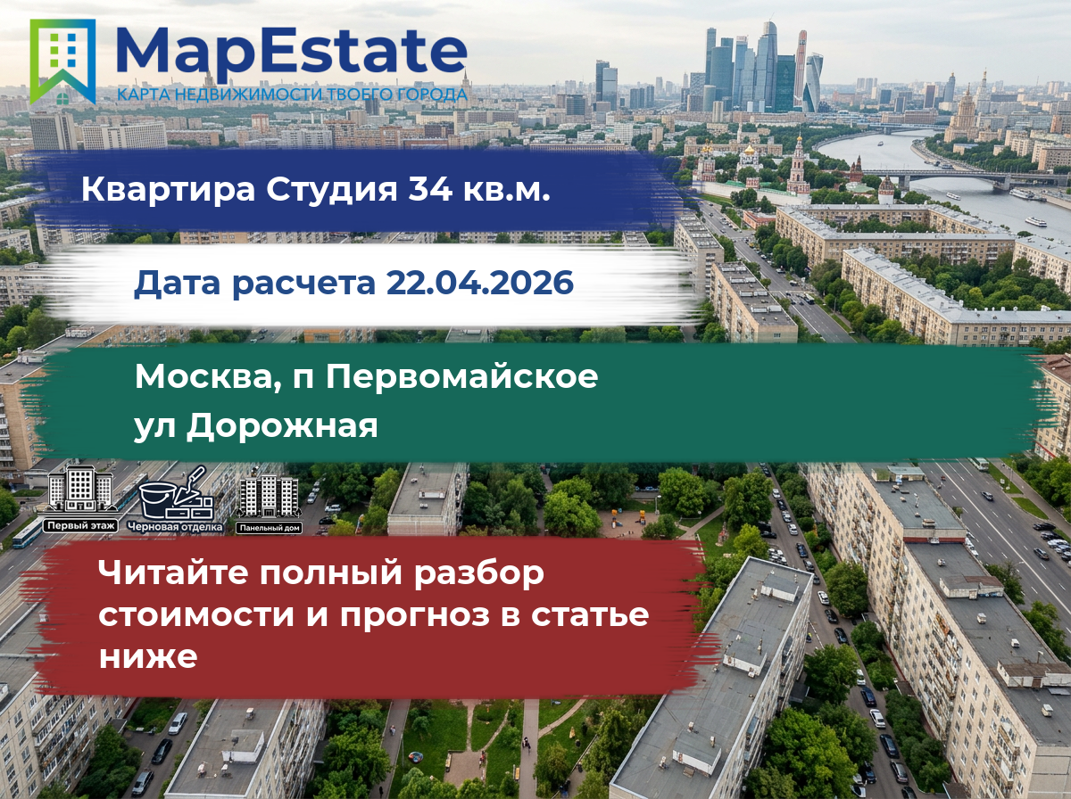 Сколько стоит квартира 34 м² в москва, п первомайское, ул дорожная?