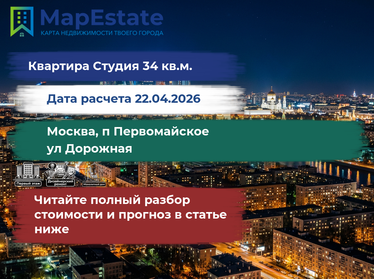 Сколько стоит квартира 34 м² в москва, п первомайское, ул дорожная?