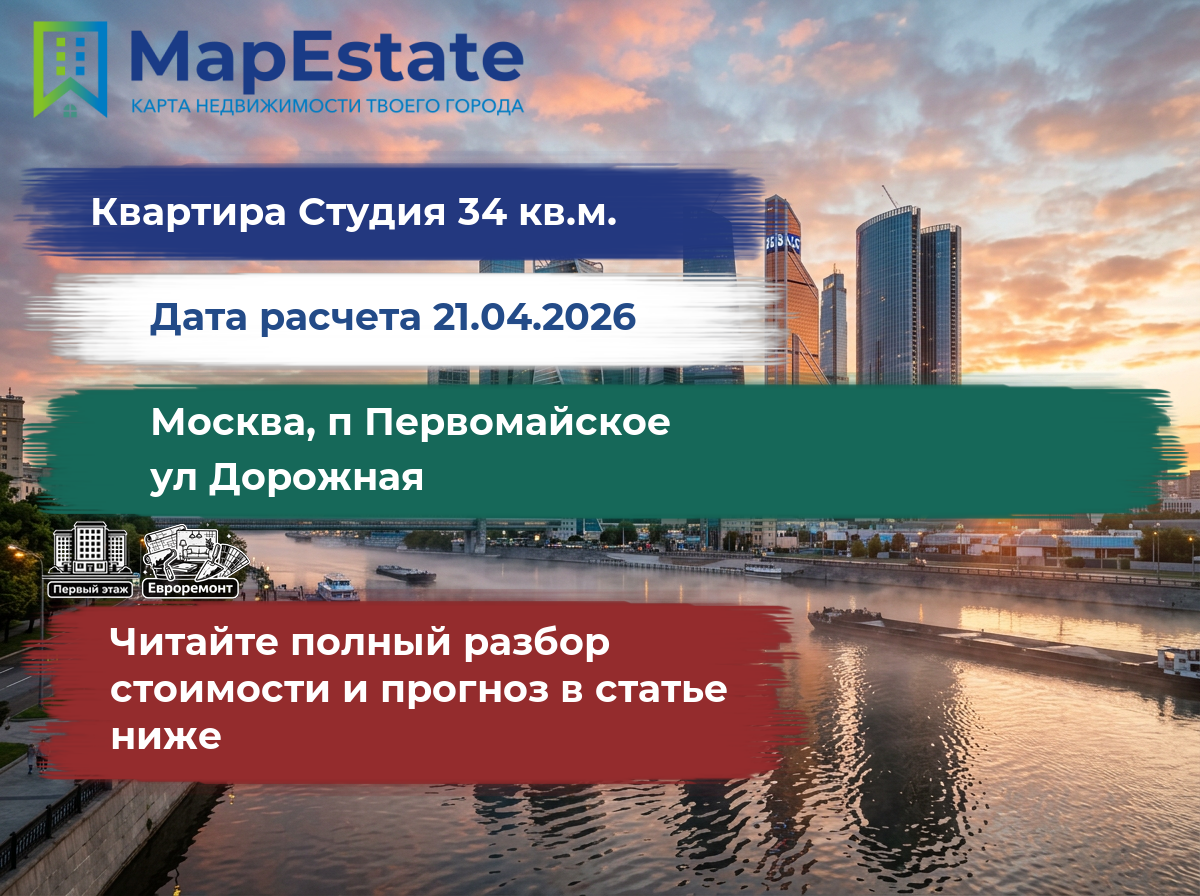 Сколько стоит квартира 34 м² в москва, п первомайское, ул дорожная?