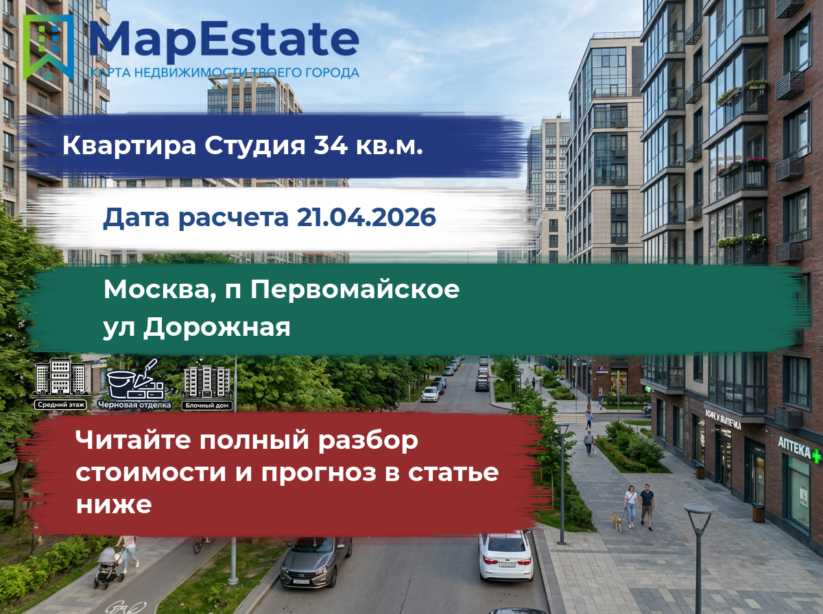 Сколько стоит квартира 34 м² в москва, п первомайское, ул дорожная?