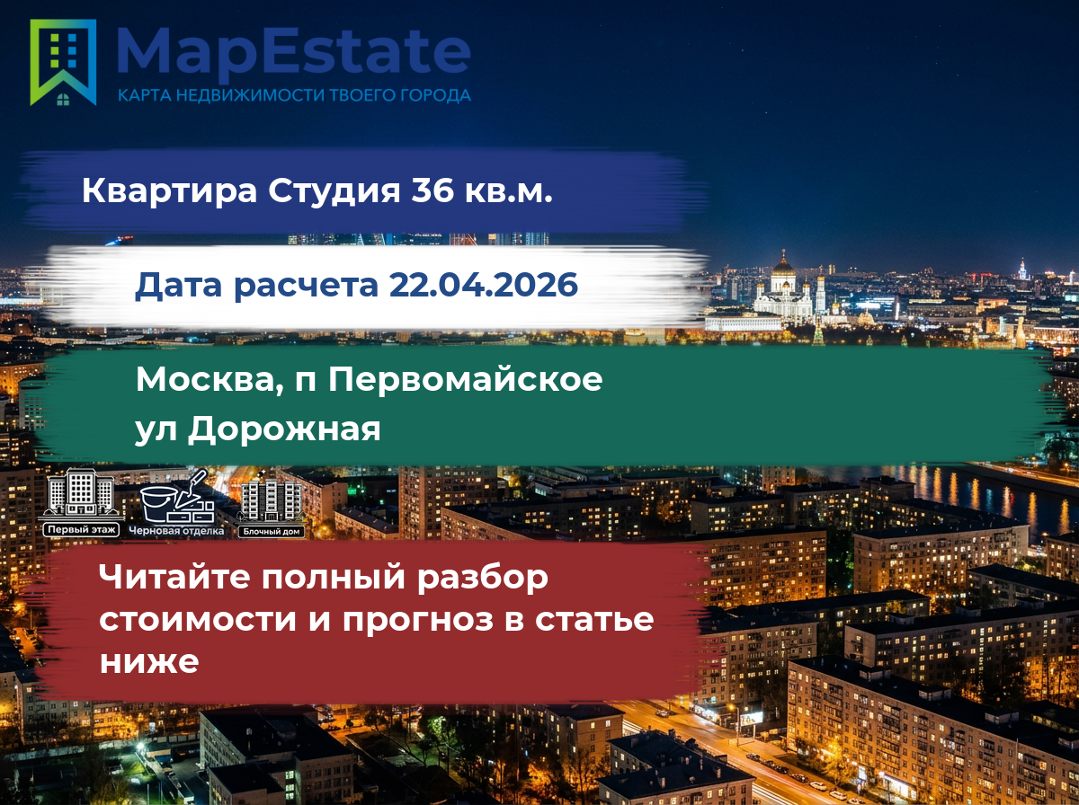 Сколько стоит квартира 36 м² в москва, п первомайское, ул дорожная?