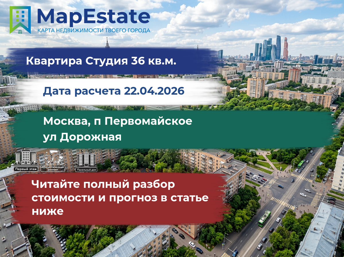 Сколько стоит квартира 36 м² в москва, п первомайское, ул дорожная?
