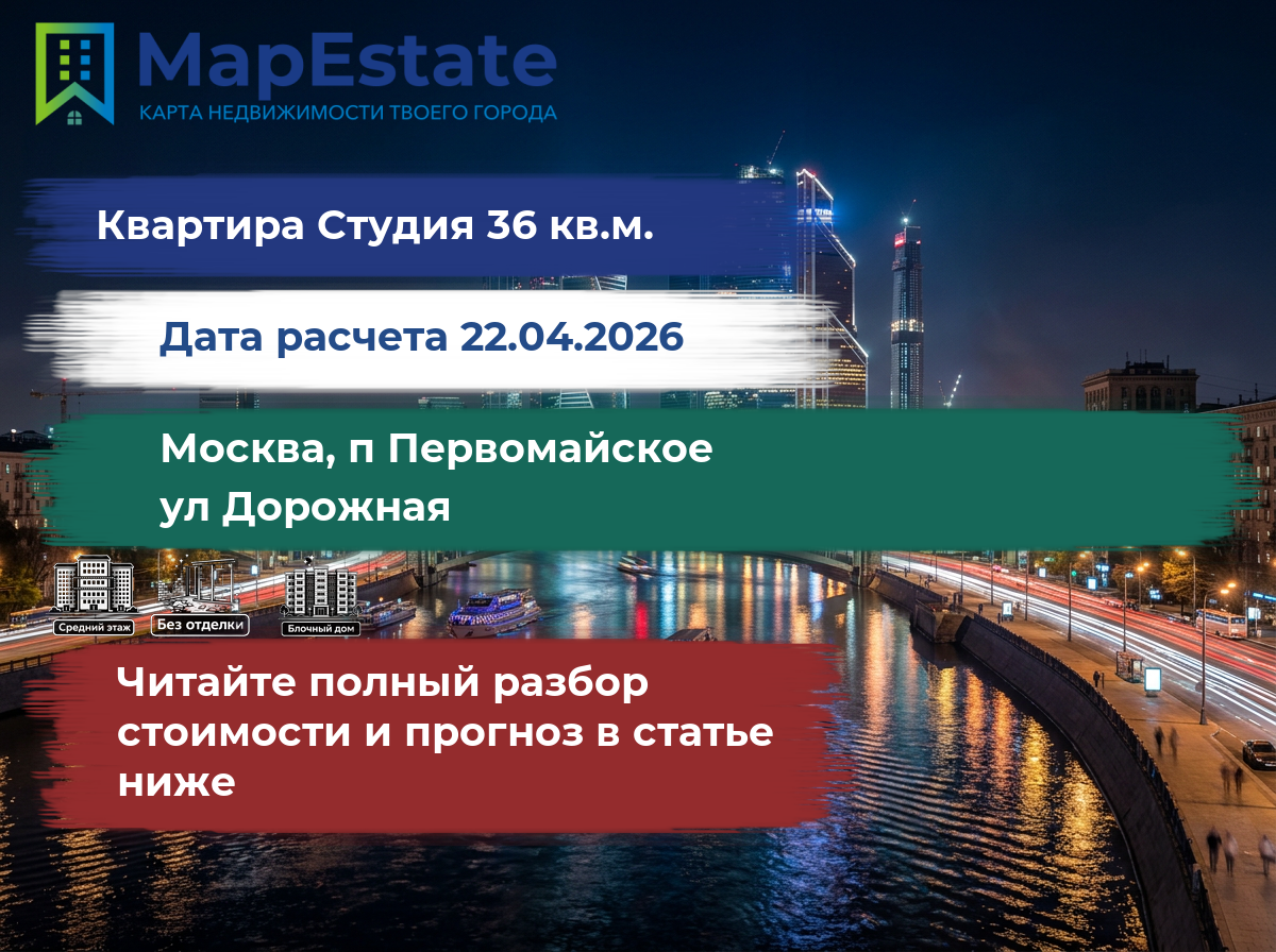 Сколько стоит квартира 36 м² в москва, п первомайское, ул дорожная?