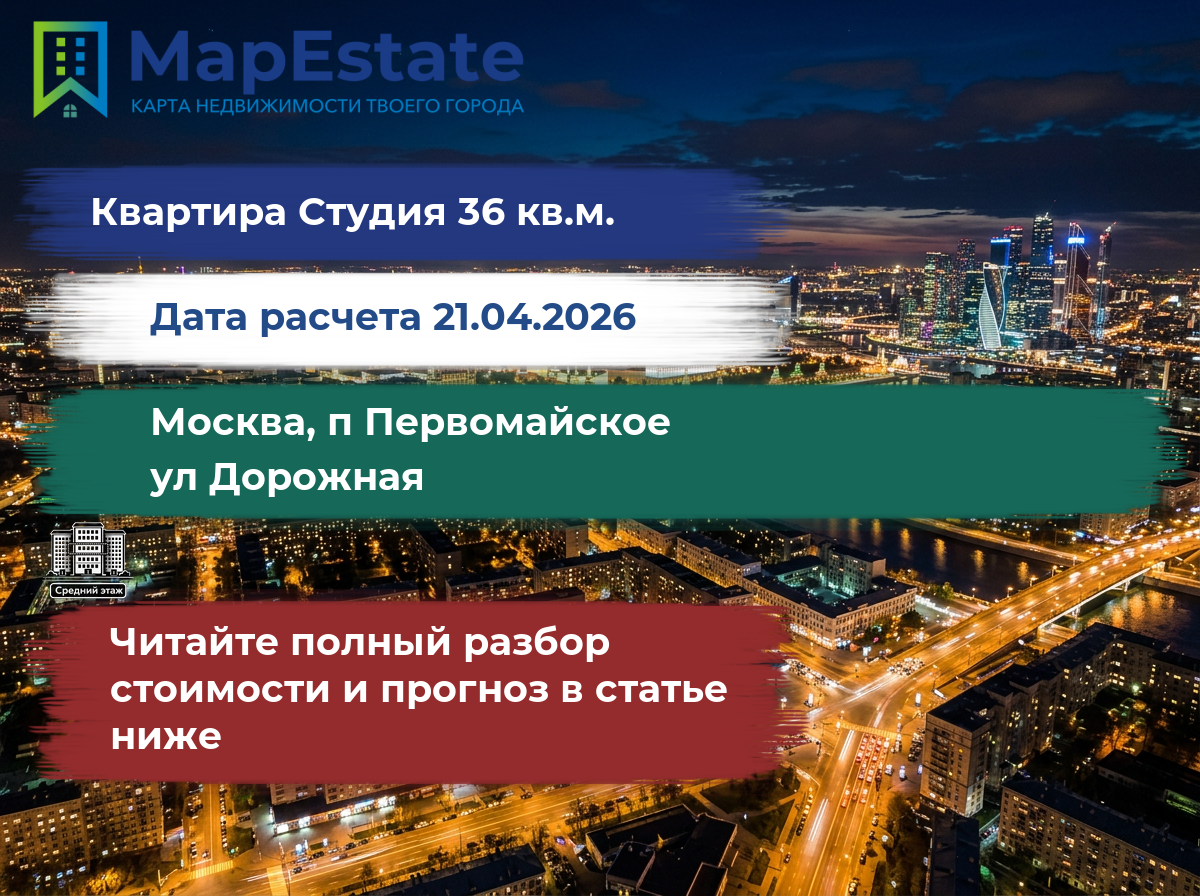 Сколько стоит квартира 36 м² в москва, п первомайское, ул дорожная?