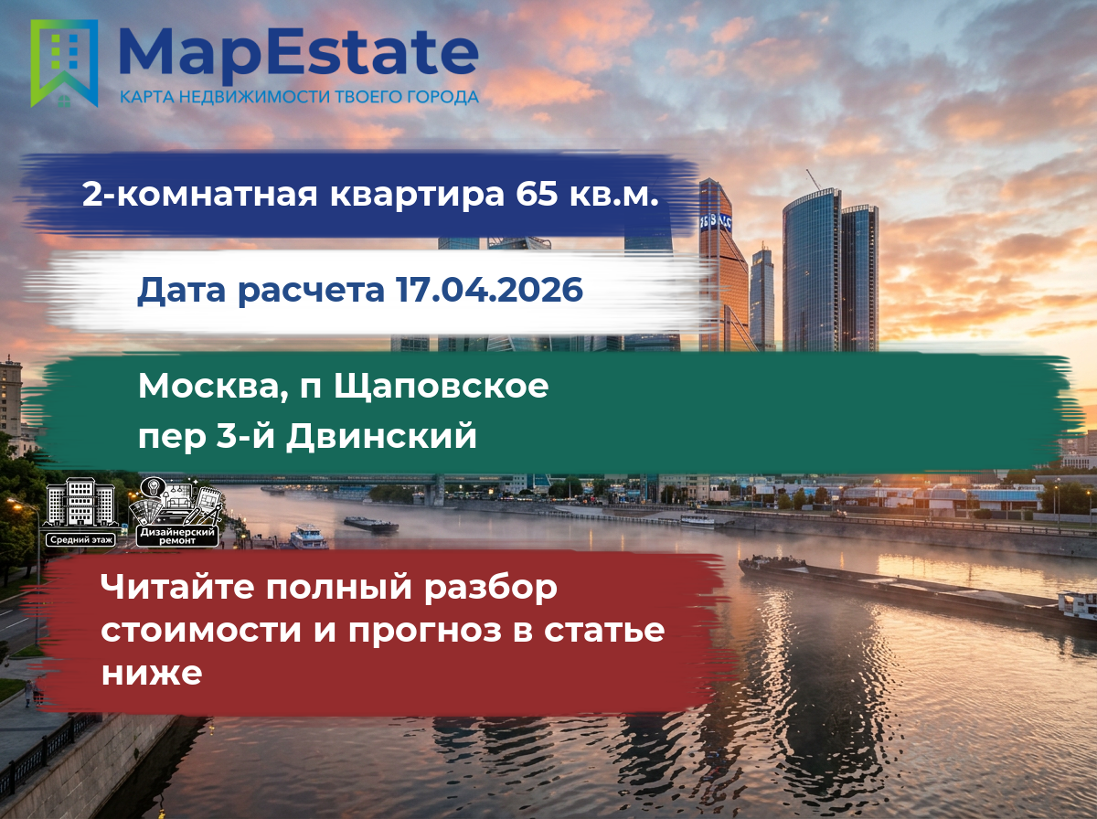 Сколько стоит квартира 65 м² в москва, п щаповское, пер 3-й двинский?