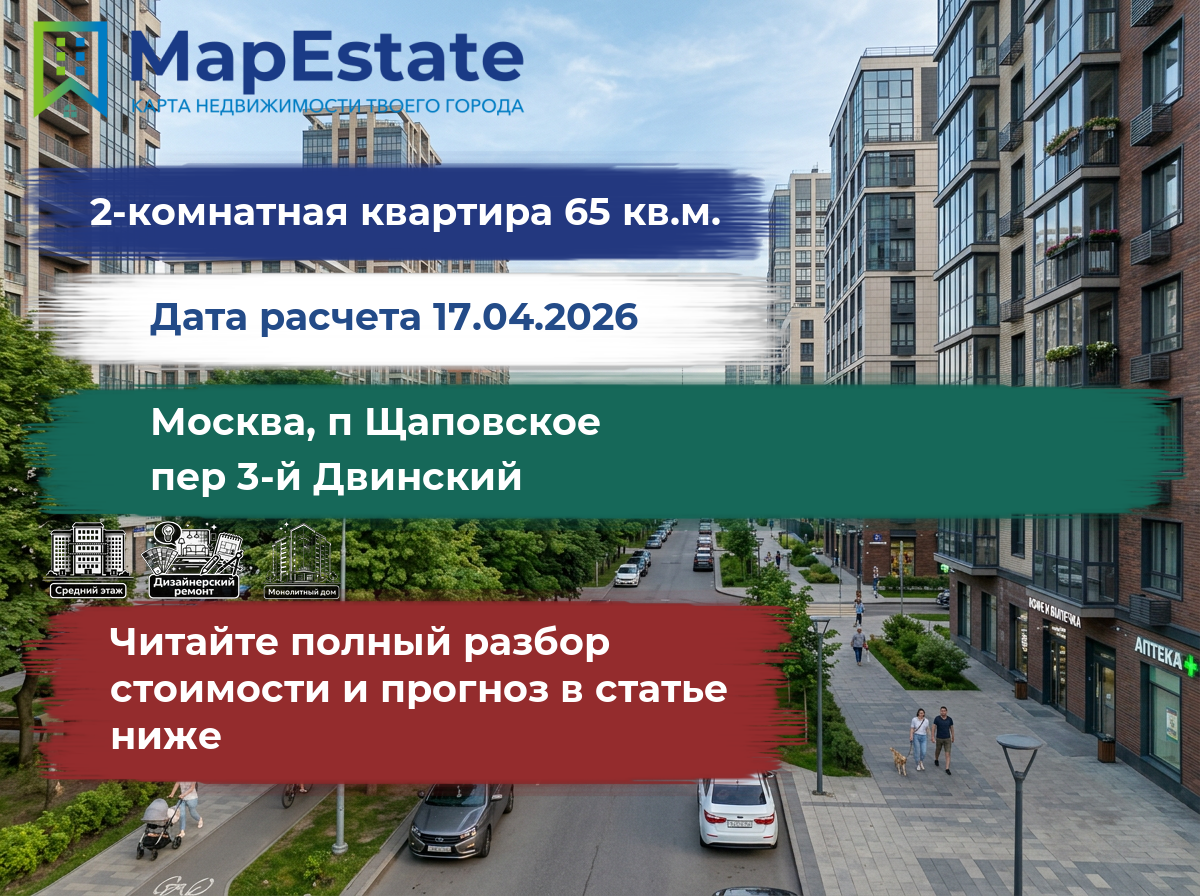 Сколько стоит квартира 65 м² в москва, п щаповское, пер 3-й двинский?