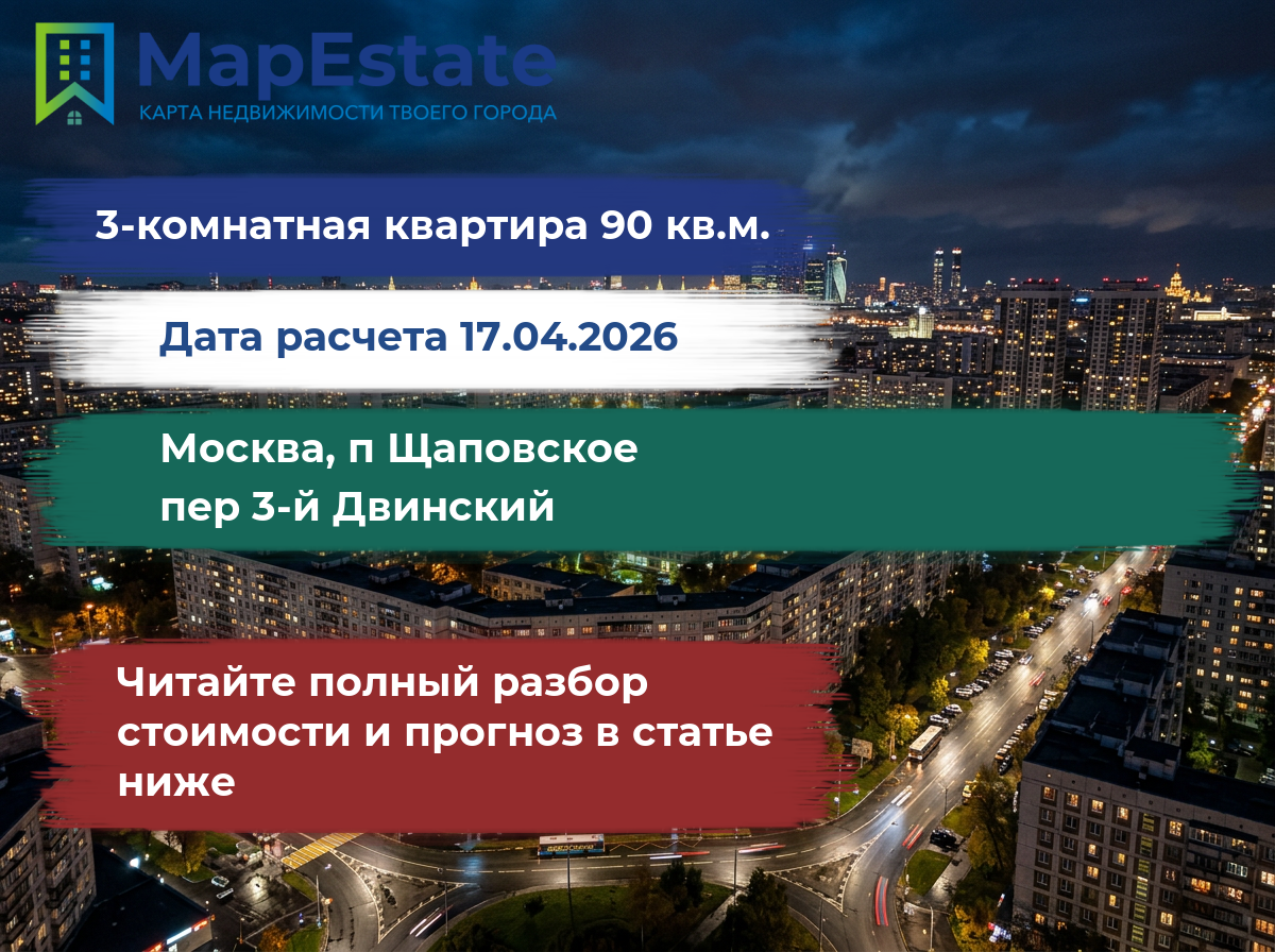 Сколько стоит квартира 90 м² в москва, п щаповское, пер 3-й двинский?