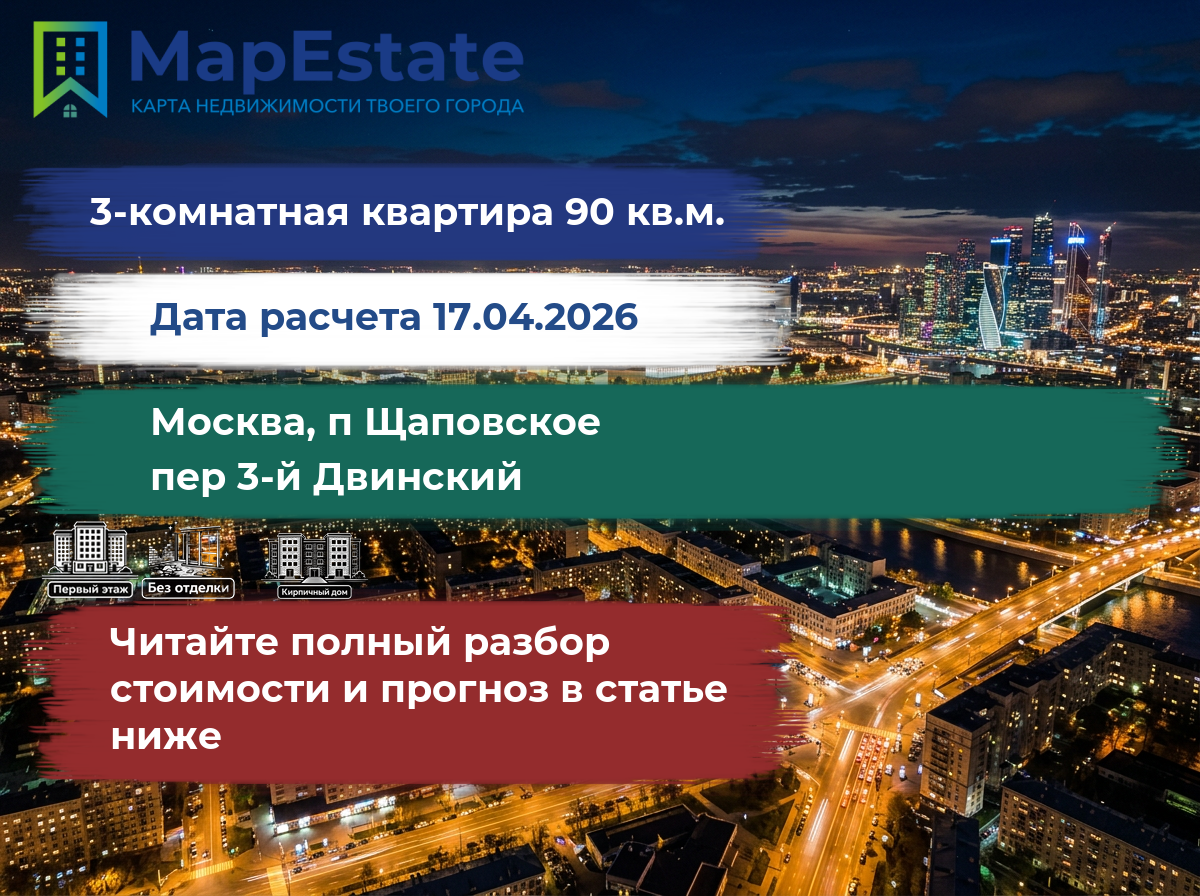 Сколько стоит квартира 90 м² в москва, п щаповское, пер 3-й двинский?