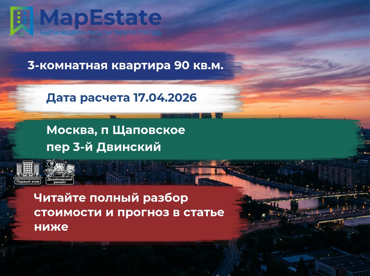 Сколько стоит квартира 90 м² в москва, п щаповское, пер 3-й двинский?
