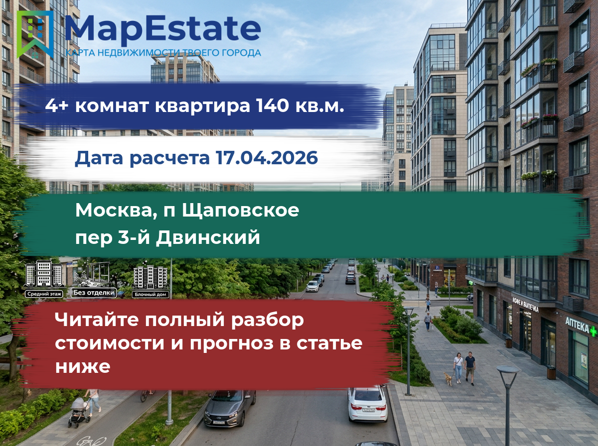 Квартира площадью 140 м² формата 4+ комнат на москва, п щаповское, пер 3-й двинский относится к распространённым объектам жилой недвижимости.