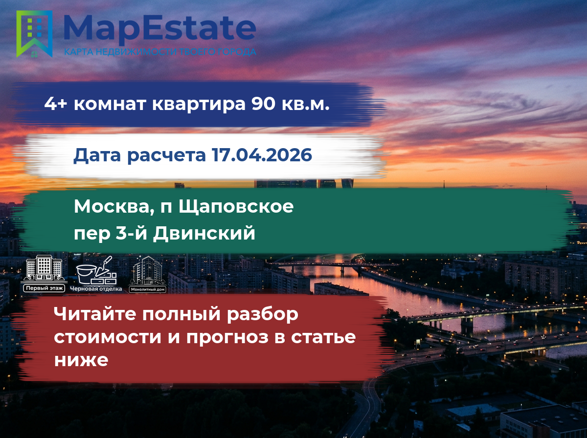 Сколько стоит квартира 90 м² в москва, п щаповское, пер 3-й двинский?