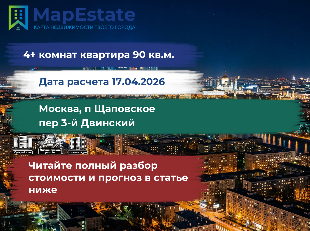 Сколько стоит квартира 90 м² в москва, п щаповское, пер 3-й двинский?