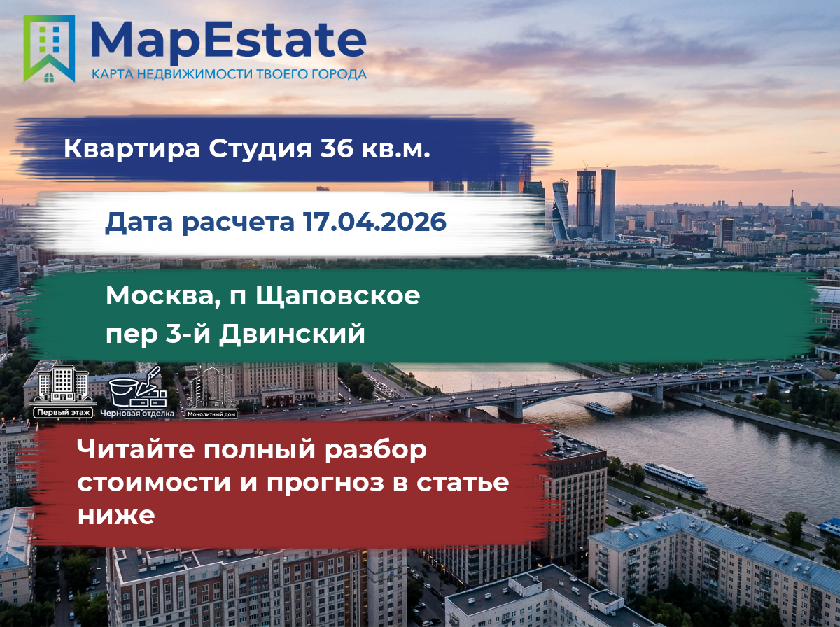 Сколько стоит квартира 36 м² в москва, п щаповское, пер 3-й двинский?