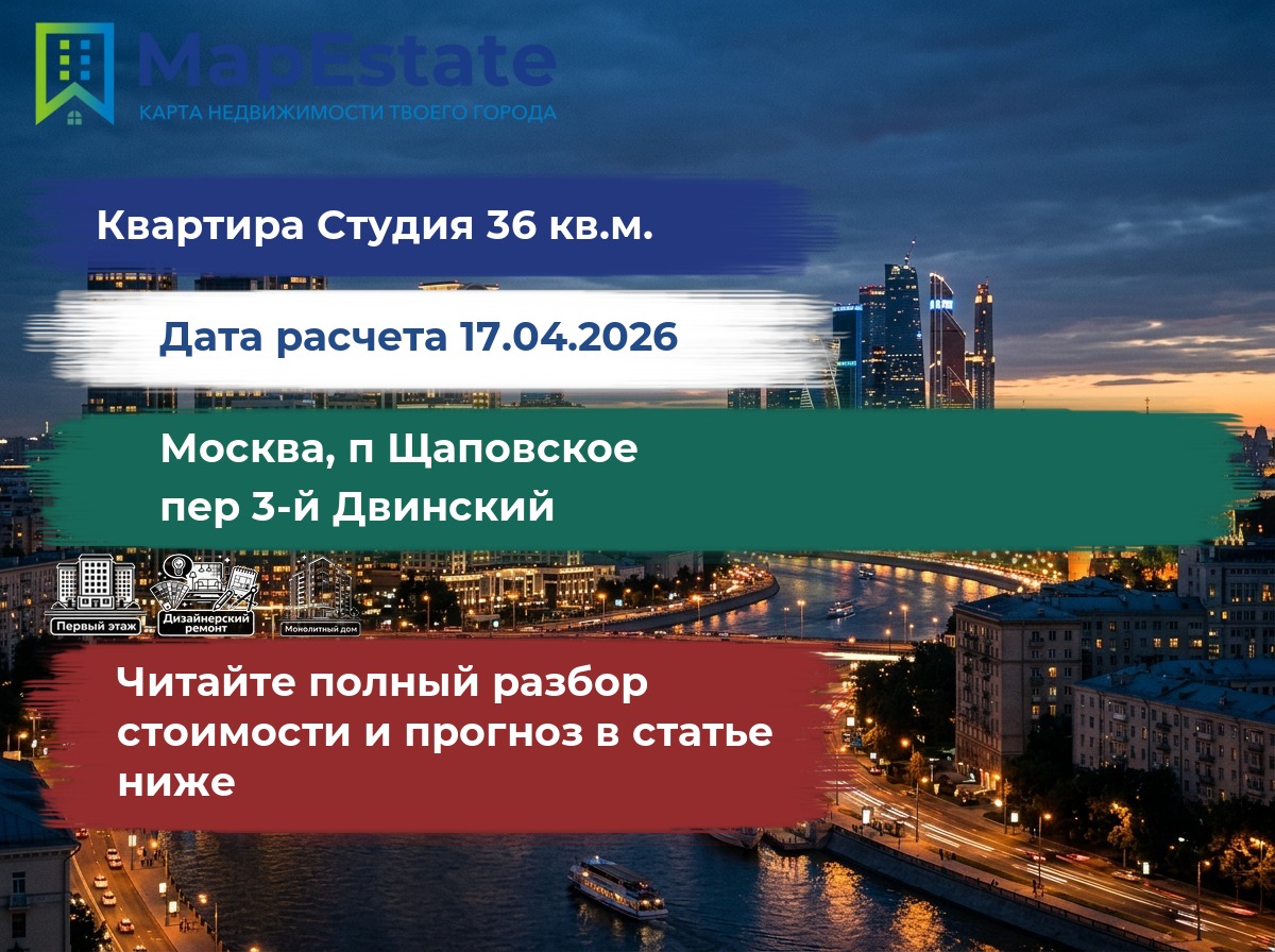 Сколько стоит квартира 36 м² в москва, п щаповское, пер 3-й двинский?