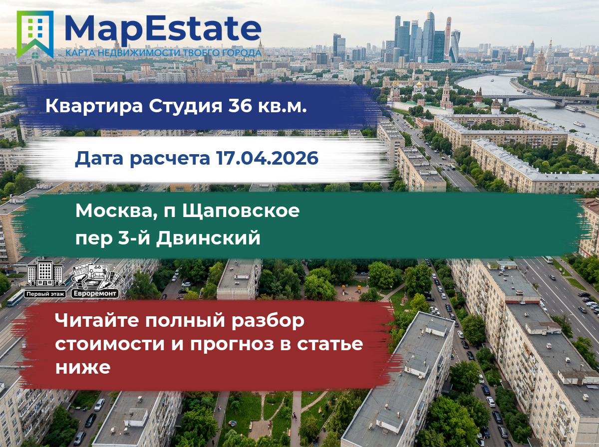 Сколько стоит квартира 36 м² в москва, п щаповское, пер 3-й двинский?