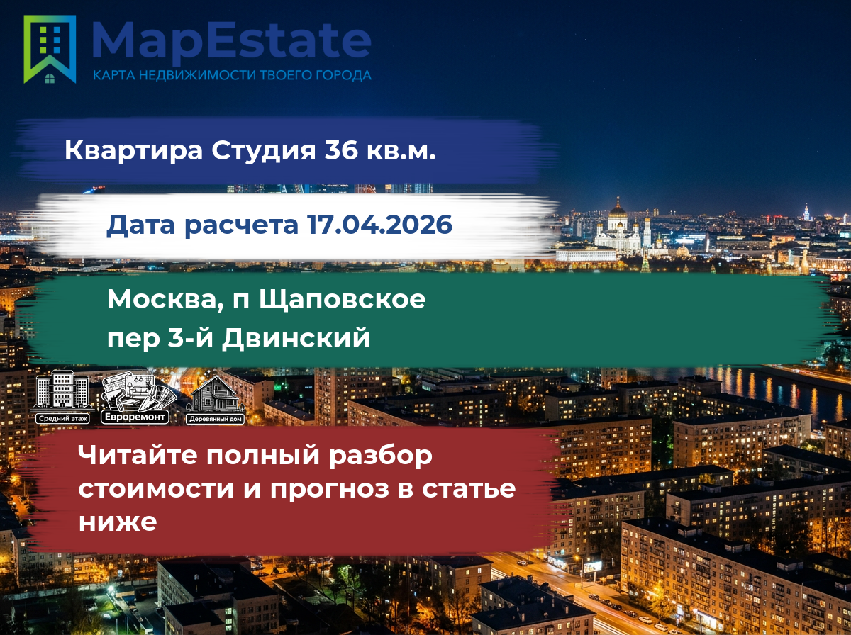 Сколько стоит квартира 36 м² в москва, п щаповское, пер 3-й двинский?